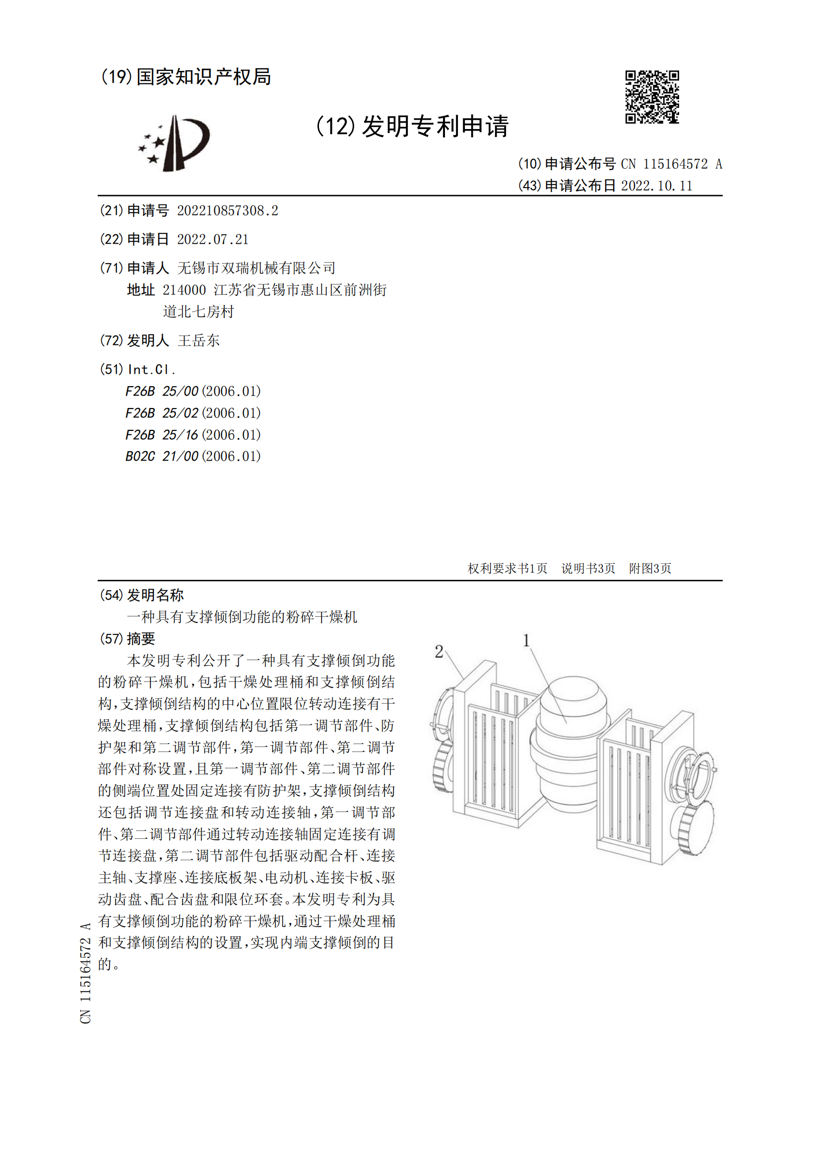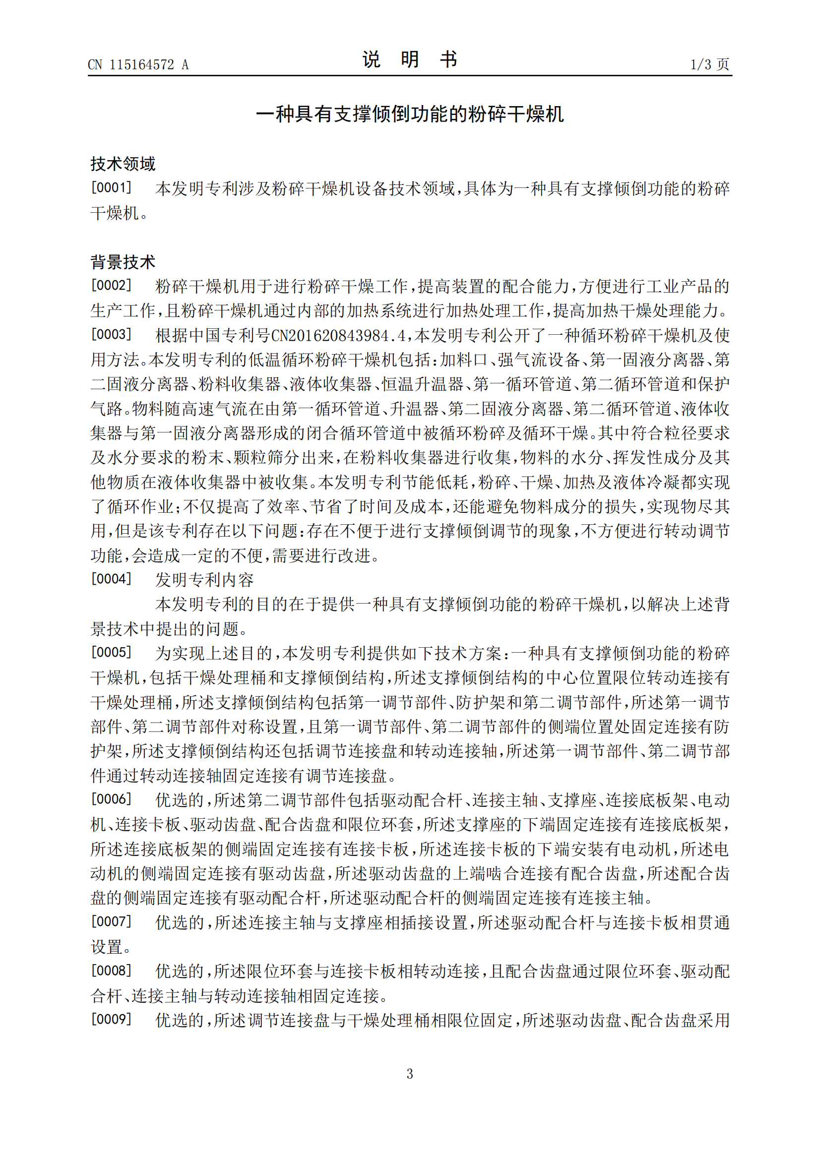 无锡双瑞专利:一种具有支撑倾功能的粉碎干燥机