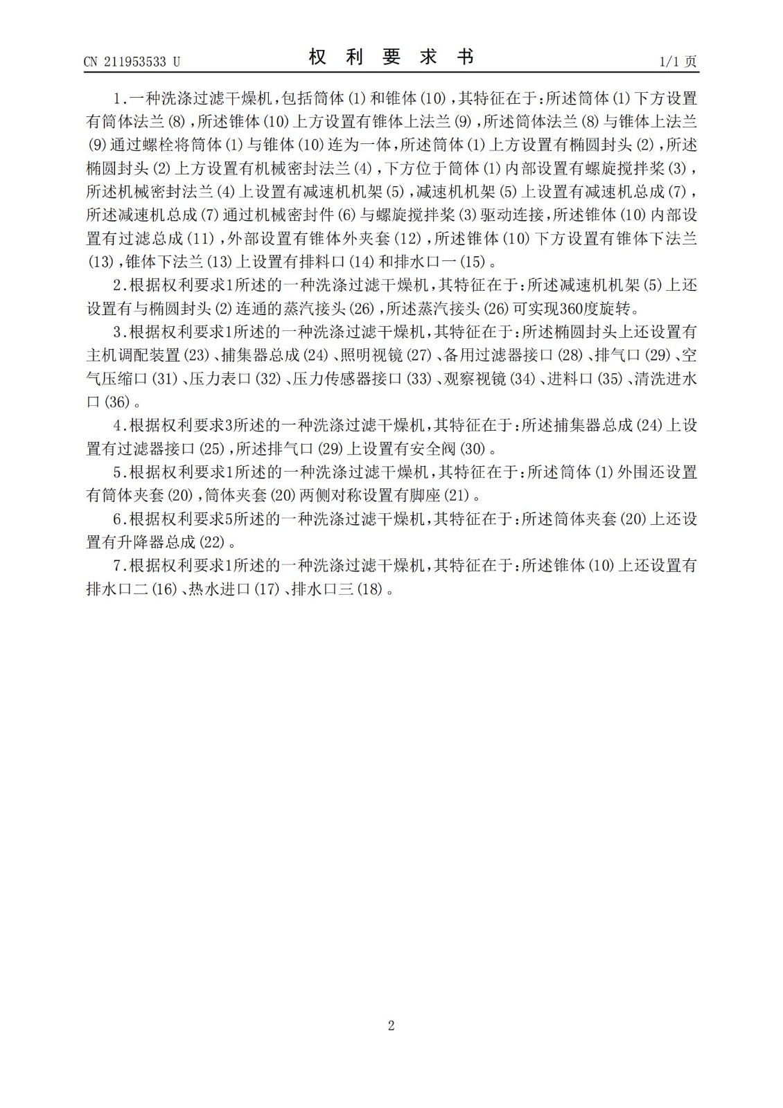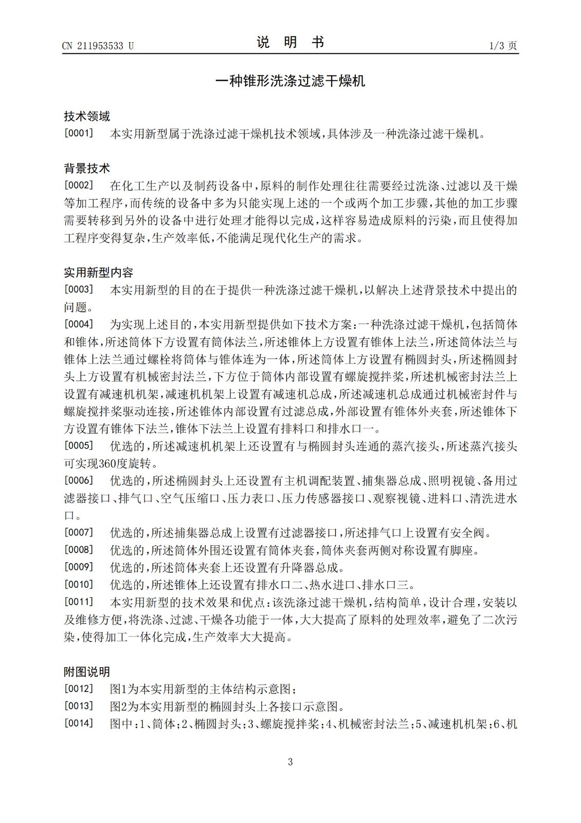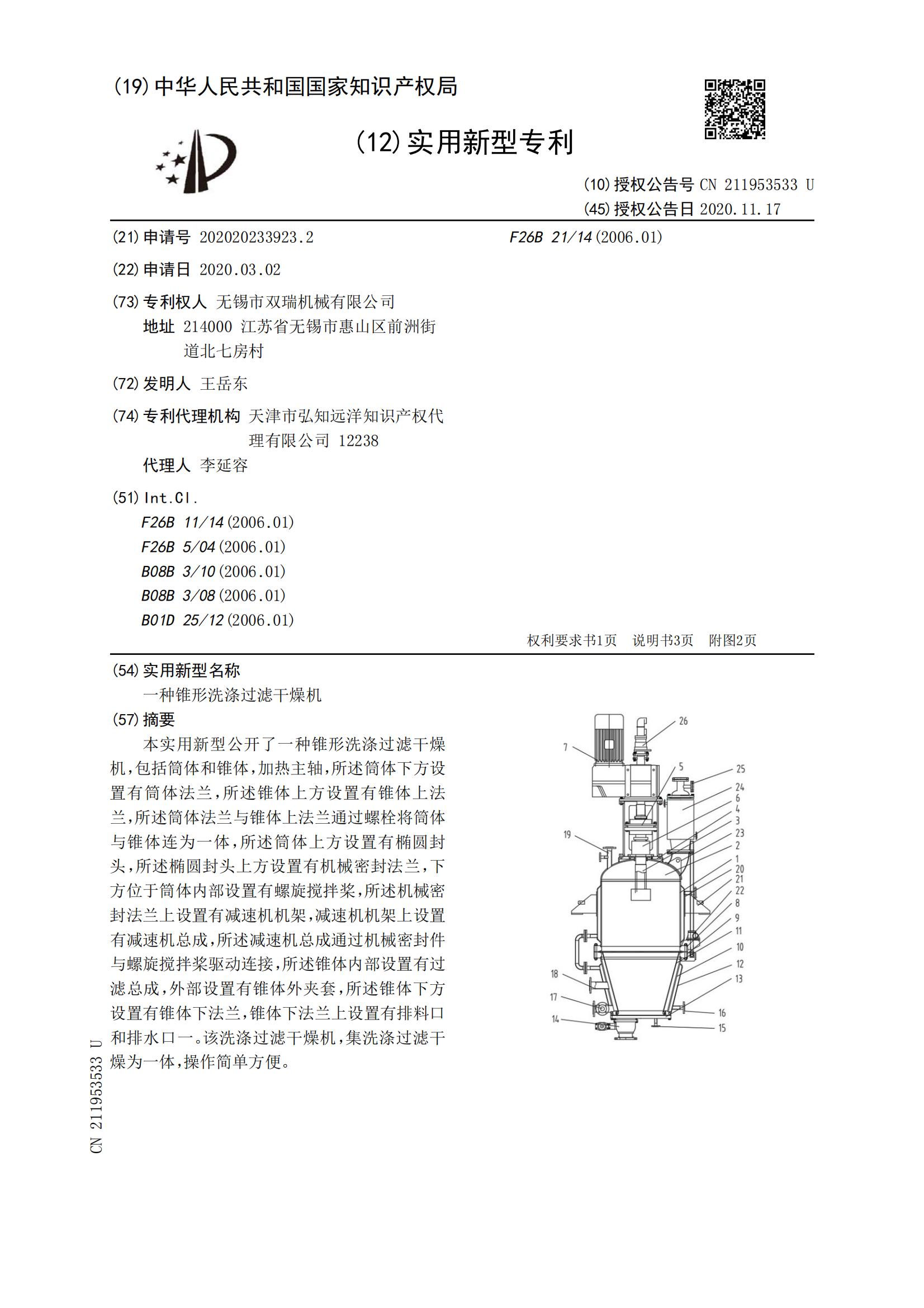 无锡双瑞专利:一种锥形洗涤过滤干燥机